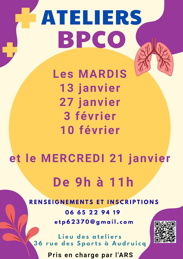 NB: Lors des ateliers, si vous avez des pathologies particulières, merci de me prévenir.